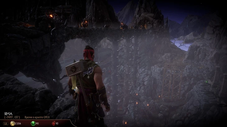 Одна из локаций острова — яма, которая находится под знаменитым мостом, где регулярно сражаются персонажи файтинга. Когда вы спуститесь туда впервые, запустится катсцена и покажет Ермака, падающего прямо на острые колья. С него можно поднять амулет, который даст персонажу возможность открывать сундуки с душами и расчищать завалы.
