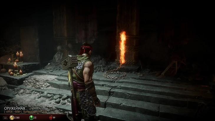 В самом начале путешествия по Крипте вам вручат молот самого Шао Кана, которым можно разламывать треснувшие стены и разбивать горшки, чтобы получить немножко золота.