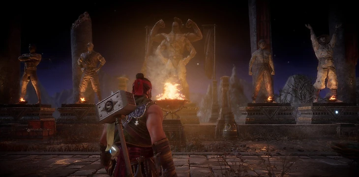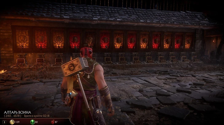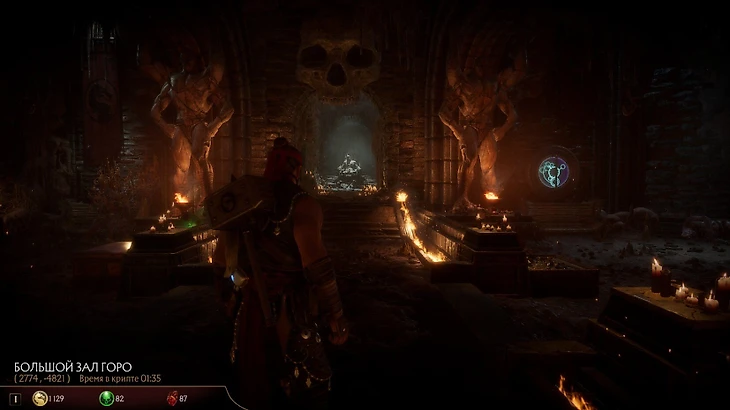Обратите внимание на стену напротив статуй бойцов – там красуются 25 алтарей с головами главных героев Mortal Kombat 11. Чтобы получить одну такую голову, нужно 50 раз выполнить фаталити или бруталити на соответствующем персонаже. За получение головы вы откроете крутые плюшки для этого героя. Если получить все головы, то вы откроете доступ к Дворцу Шан Цзуна – в его покоях хранятся дорогие сундуки (по 25 тысяч монет) с крутым лутом.