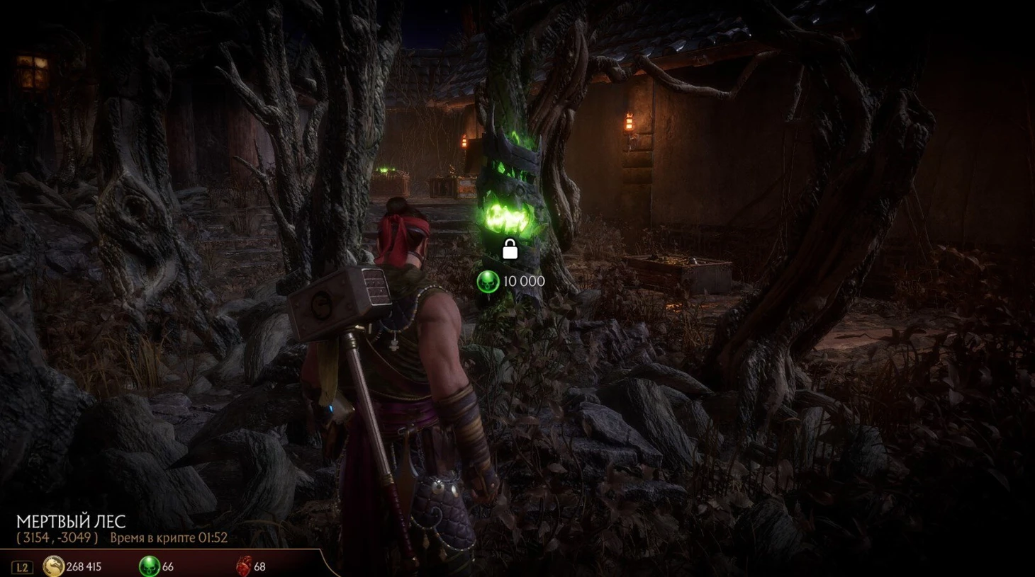 Обычные сундуки открываются за золотые монеты (цена варьируется в зависимости от крутости ящика), зеленые души мертвых монахов открываются с помощью фрагментов душ (но для этого потребуется амулет Ермака). За сердца открываются сундуки с символами Скорпиона (100 сердец) и Шао Кана (250 сердец) – в них содержится самый крутой лут. Доступ к сундукам Скорпиона можно получить, только если сбить огненную лампу с помощью гарпуна Хандзо Хасаши.