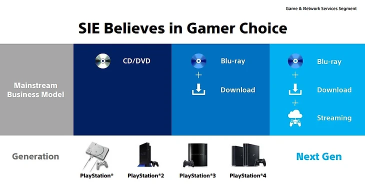 Компания еще не сообщила ее дату релиза, стартовую линейку проектов, цену, доступные сервисы и страны, в которых консоль будет продаваться. Но она предоставит пользователям максимально возможный выбор как именно пользоваться консолью. Помимо дисков и возможности загружать игры из сети, Sony сделает большой упор на PS Now: это стриминговый сервис от самой Sony, через который можно играть на PS4 или даже на ПК в игры с PS4, PS3 и PS2. Игру можно как скачать на свое устройство, так и сыграть в нее через потоковую трансяцию