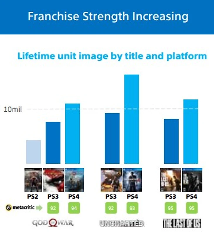Это делает ее самой быстропродаваемой игрой за всю историю PlayStation. Обновленная God of War вышла в апреле прошлого года, и всего за 12 месяцев сумела преодолеть этот солидный рубеж. Вместе с этим Sony отчиталась и о других своих успешных франшизах — серии Uncharted и The Last of Us. Приключенческий боевик про Нейтана Дрейка продался почти вдвое лучше предыдущей части, а переиздание The Last of Us для PS4 превысило продажи оригинальной игры для PS3 и тоже пробило отметку в 10 миллионов проданных копий.