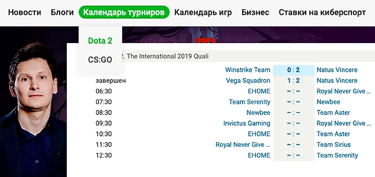 Из вкладки «Календарь турниров» можно перейти в календари по Доте и CS:GO – там собраны главные турниры ближайшего полугодия.