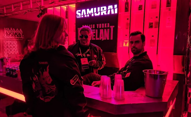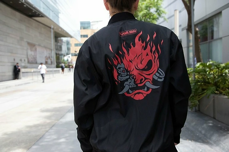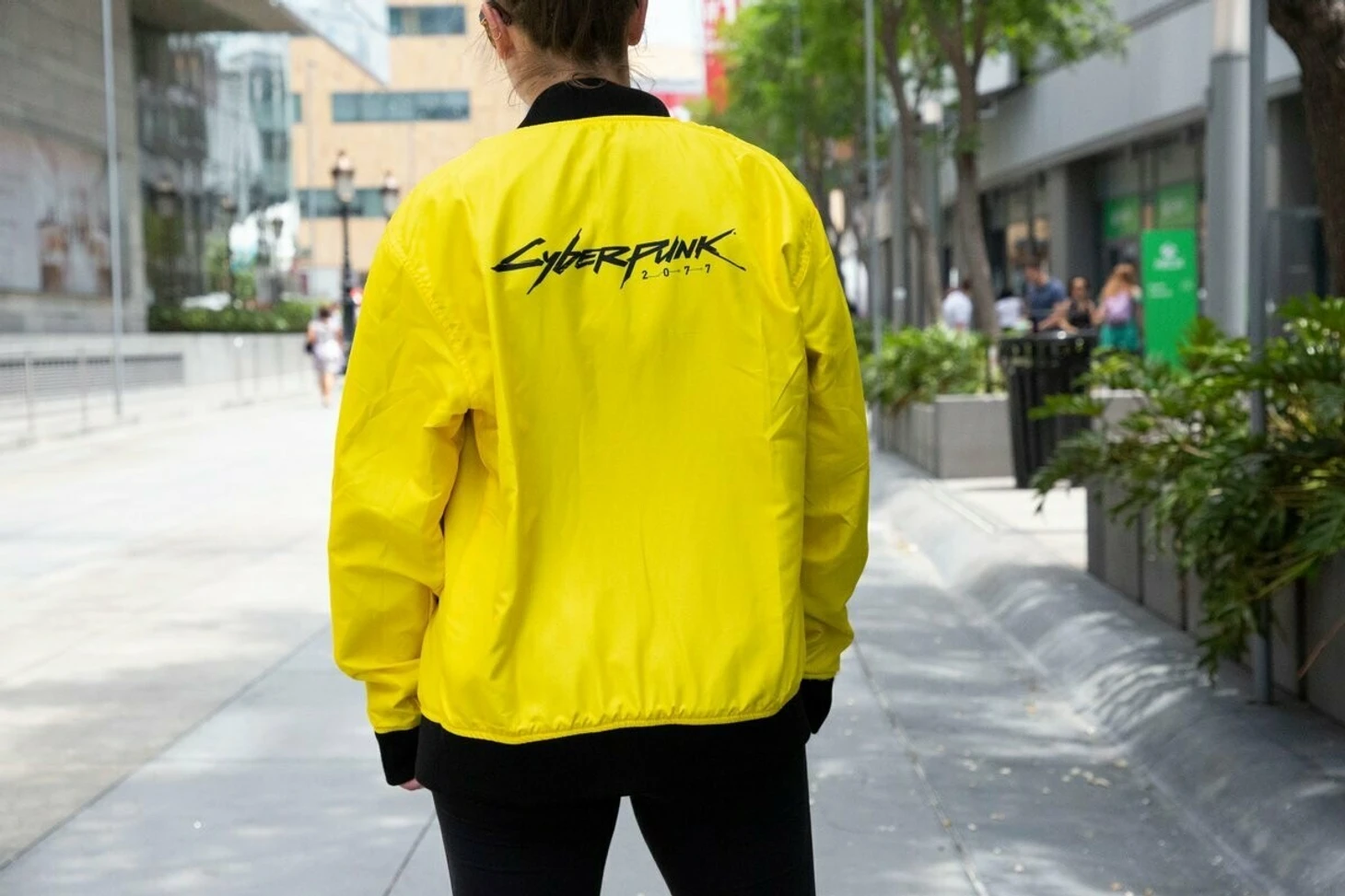 Тогда же гостям раздавали уникальные двухсторонние бомберы Cyberpunk 2077.