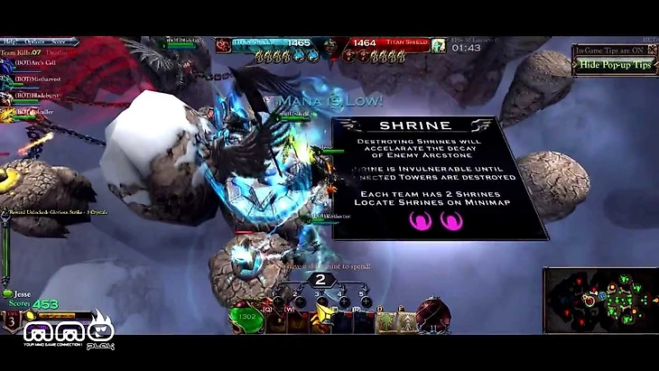 Чего следует ожидать от игры с названием «Dragons and Titans» («Драконы и титаны»)? Конечно же, огня, серы и битв эпических масштабов, потрясающих само основание Земли. Однако в реальности игра, пополнившая ряды популярного ныне жанра MOBA, слаба и топорна, а на свою принадлежность к жанру опирается как на костыль. И хотя «Dragons and Titans» могут похвастаться фэнтезийной атмосферой, от самой игры хочется плакать.«Dragons and Titans» - это еще одна free-to-play игра, которая пытается идти по стопам «Dota 2» и «League of Legends». Вы выбираете дракона и легендарное оружие, а затем присоединяетесь к команде и сосредотачиваетесь на изничтожении команды противника. По законам жанра есть три режима сражения. Основной режим заключается в освобождении титана, принадлежащего вашей команде, посредством уничтожения клетки вражеского титана в центре базы. Клетка титана окружена щитом, а опоясывающие вражескую базу строения нужно использовать для того, чтобы ослабить щит или ускорить его разрушение. Матчи в «Dragons and Titans» в отличие от остальных представителей жанра довольно короткие, в среднем они длятся до 20 минут, что не идет ни в какое сравнение со сложными многочасовыми баталиями в «League of Legends».В «Dragons and Titans» вы играете драконами. Вы можете атаковать противника различными заклинаниями в конусообразной области, которая появляется в том направлении, куда смотрит ваш дракон. Навыки атак напрямую связаны с тем элементом, представителем которого является ваш дракон: яд, огонь, свет, песок, туман и так далее. Однако именно привязка зоны поражения к конусообразной области, которая находится строго перед мордой дракона, и является причиной глубокого разочарования в игре. Когда заканчиваются заклинания и способности или когда мана израсходована, вам и вашим противникам не остается ничего, кроме как сражаться при помощи вышеописанных базовых атак. В этом случае все придерживаются трех правил: 1) летать зигзагами, чтобы не попасть под раздачу, и добивать тех, кто слишком слаб, чтобы дать отпор;2) преследовать тех, кто отлетает назад во время перезарядки навыков;3) лететь прямо на врага, что приводит к тому, что вы с противником описываете круги, стараясь оказаться друг у друга на хвосте.В результате игра превращается в унылый хаос.Кроме базовых атак у драконов есть способности, связанные с их внешним видом. Так у бумажного дракона есть бонус в виде дополнительного щита, добавляющего здоровья для компенсации его тонкого как бумага (в буквальном смысле) показателя защиты. Костяной дракон силен в ближнем бою, а дракон магмы может кидаться во врагов пылающими булыжниками. Вид дракона, его навыки и базовые характеристики, – вот и все, что роднит персонажей «Dragons and Titans» с прочими представителями жанра MOBA.В одной команде не может находиться два дракона одного и того же вида; то же самое касается и легендарного оружия. Последнее дает вам две дополнительные способности. Любой вид оружия подойдет любому дракону, так что есть возможность разнообразить стиль игры. Это влечет за собой возможность мастеру дальнего боя наносить серьезный урон и при близких столкновениях. Однако такие возможности стирают различия между игровыми классами и делают геймплей однообразным.В «Dragons and Titans» есть и одиночная кампания для тех, кому неинтересен многопользовательский режим или для тех, кто устал от схваток с други