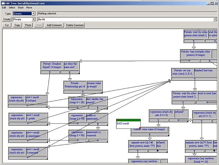 Древо кода романтических отношений в ранней версии The Sims