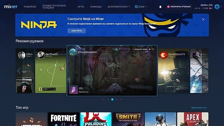 В то же время у Mixer пока нет известных топов (кроме только что пришедшего Блевинса), зато прямо сейчас там кочуют десятки тысяч новых зрителей, листающих список трансляций в поисках чего-нибудь интересного — например, пока ждут начала стрима того же Ninja.