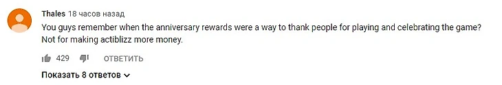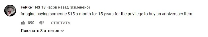 «Ребята, а вы помните, что награды в честь годовщины – это способ отблагодарить людей за годы, что они провели в вашей игре, а не чтобы наполнить кошельки деньгами?»