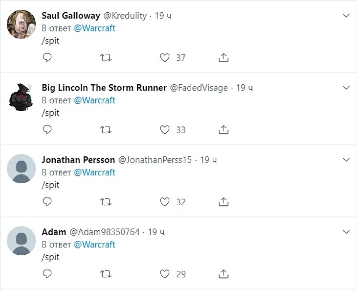 В реплаях десятки игроков написали /spit – так в WoW обозначают эмоцию плевка в противника.