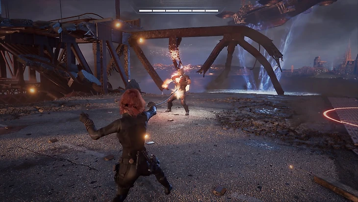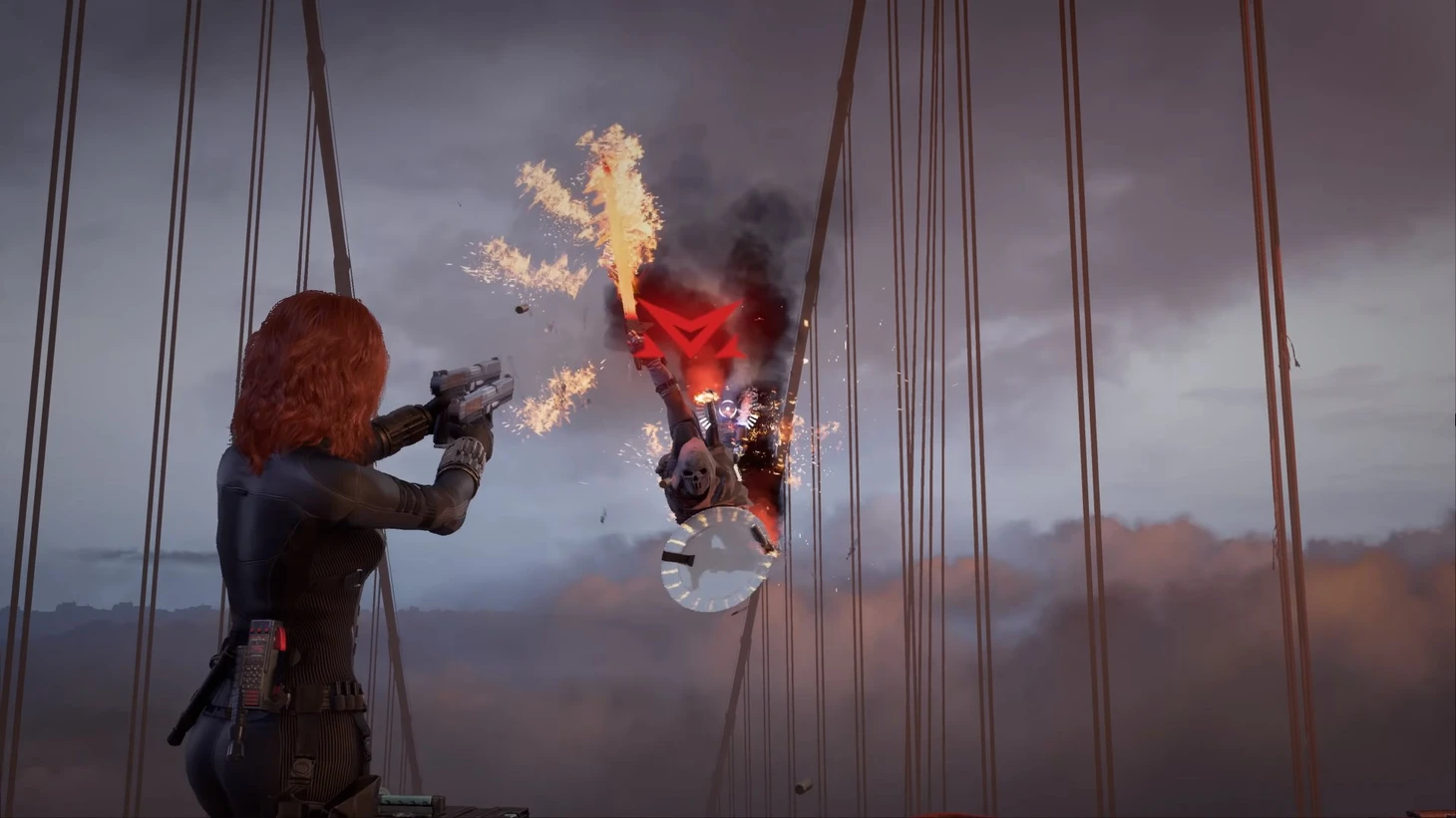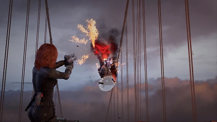 • Эпизод за Наташу напоминает Uncharted. Сначала динамичная погоня за Таскмастером (включая поездку верхом на его спине), затем – множество QTE под невероятно круто срежиссированный полет над мостом, а затем бой с самим Таскмастером на вершине моста. Оппонент у Вдовы весьма опасный, фотографическая память позволяет ему за секунды копировать боевые приемы своих оппонентов, из-за чего одолеть его становится еще сложнее. Кроме того, у него есть джетпак, меч и щит.