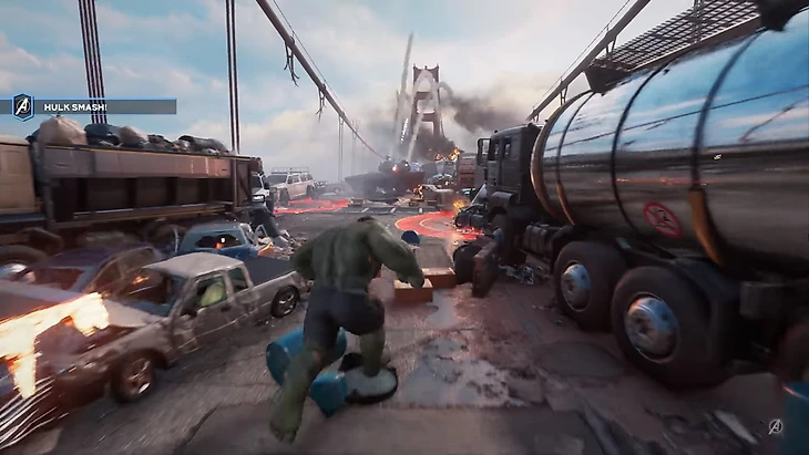 • Демка основана на том же временном промежутке, что и дебютный трейлер – на атаке террористов во главе с Таскмастером и битвой на мосту. Началась демонстрация с умений Тора. По своему поведению громовержец очень напоминает Кратоса из God of War, и это неудивительно – Square Enix наняла дизайнера боевой системы GoW. Тор умеет не только бить противников руками и молотом, но и пускать молнии и резво передвигаться по воздуху с помощью рывков. Другая фишка, знакомая фанатам Кратоса – молот можно раскрутить и с силой кинуть в противника. Чем дольше держишь кнопку, тем сильнее бросишь.