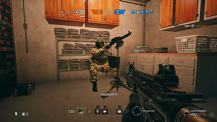 Вкратце про то как строится бой: идет выбор оперативника, у каждой из сторон свой набор бойцов. По окончанию фазы выбора начинается фаза подготовки, атакующие разведывают позиции защитников, тем временем защита укрепляет позиции внутри здания. На фазе атаки игроки атакующей стороны появляются на заранее выбранных точка появленияc снаружи здания и далее уже все в руках самих игроков.