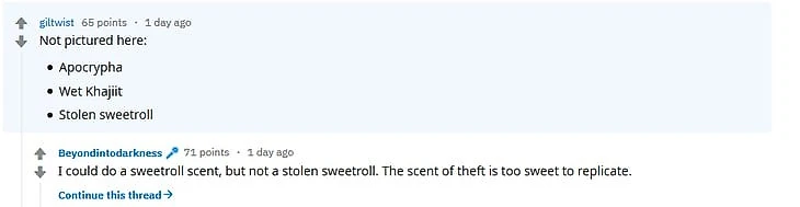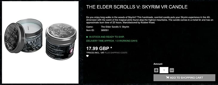 Ранее похожую идею реализовала и сама Bethesda: к выходу Skyrim VR для PlayStation VR она выпустила ароматическую свечу с обобщенным запахом вымышленного мира. Использовать ее предлагалось так же, для дополнительного погружения. Но – свеча была всего одна.