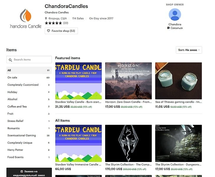 В ее лавке на Etsy под названием Chandora Candles есть ароматические свечи для игры в Stardew Valley, «Ведьмака» и даже Horizon: Zero Dawn. Последняя, например, имеет нескольких слоев, которые будут меняться приблизительно по мере того как игрок должен открывать новые локации.