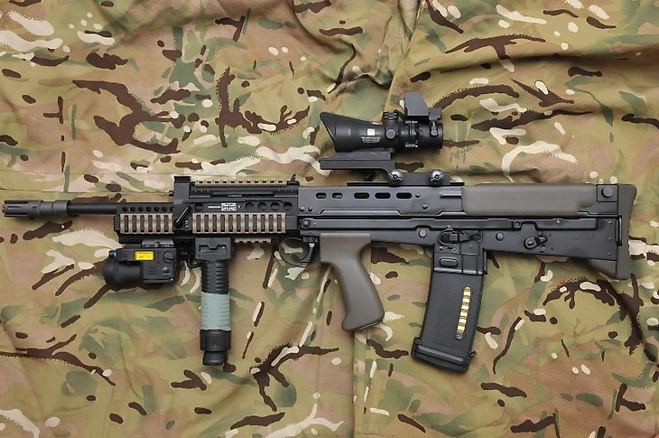 L85A2 — штурмовая винтовка, реальный прототип-SA80 (SA-80 — Small Arms for 1980 — стрелковое оружие 1980-х годов) — британский комплекс стрелкового оружия, разработанный в середине 1980-х годов и состоящий из автомата L85, лёгкого (ручного) пулемёта L86, короткого автомата L22 и учебной винтовки L98. Комплекс состоит на вооружении британской армии, одна из первых винтовок «булл-пап» — магазин находится позади спускового крючка.