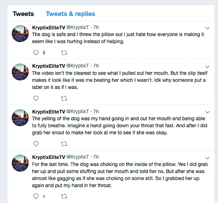 Kryptixelitetv попытался оправдаться и заявил, что он на самом деле не душил собаку, а пытался ей помочь.