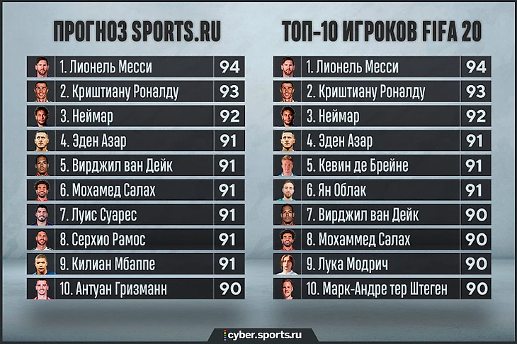 Топ-100 футболистов в FIFA 20: Ван Дейк не в пятерке, Мбаппе – даже не в десятке