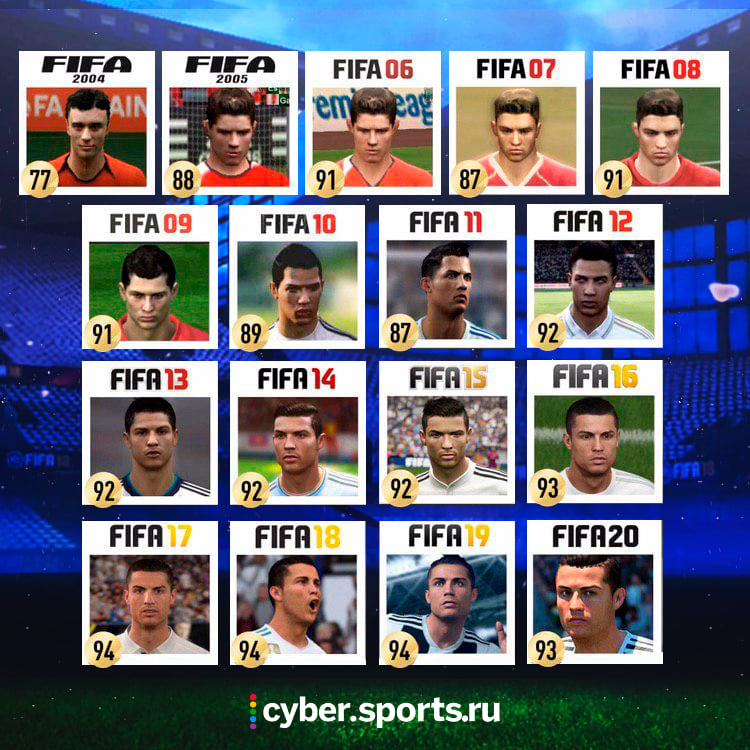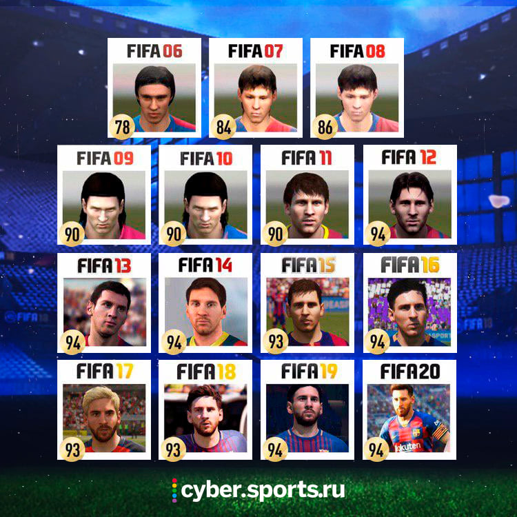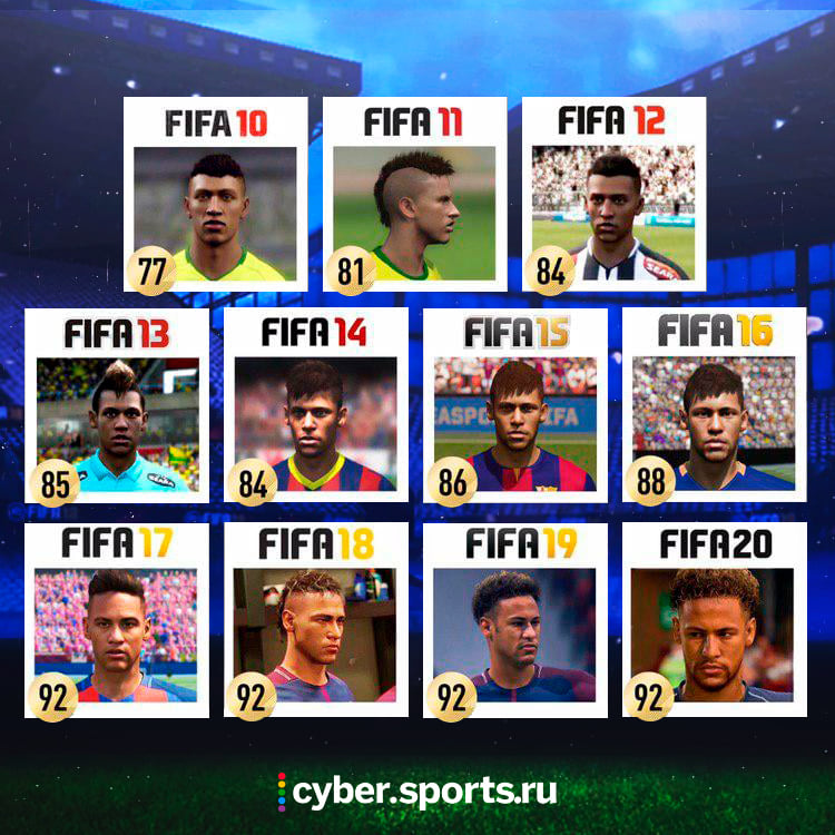 Недавно Electronic Arts опубликовала топ-10 лучших футболистов в FIFA 20. Тройка лучших предсказуема: Лионель Месси, Криштиану Роналду и Неймар. Sports.ru вспоминает их рейтинги и то, как они выглядели в прошлых версиях симулятора.