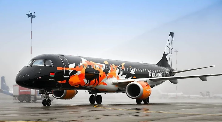 В конце 2018 года компания разукрасила уже второй самолет – Embraer 195. Его покрасили в более агрессивном стиле; отделке подверглась не только внешняя оболочка, но и внутренние интерьеры, а на фюзеляже нарисовали зубра – национальный символ Беларуси.