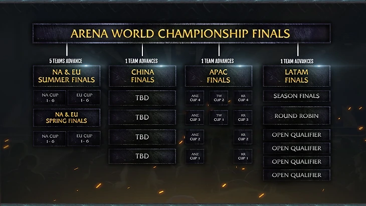 Арены предполагали ПВП сражения формата 2 на 2, 3 на 3 и 5 на 5. Самым перспективным и балансным вариантом оказался 3 на 3. Первый крупный турнир The World of Warcraft Arena Tournament состоялся в 2009 году, уже после выхода дополнения Wrath of the Lich King. На эти турниры могли регистрироваться любые команды, заплатив по 15 евро с человека. Их помещали в специальный игровой мир, где позволялось создавать персонажа максимального уровня и получить лучшие вещи для ПВП. В 2014 году соревнование реформировали в World Arena Championship, а попасть на турнир стало сложнее.