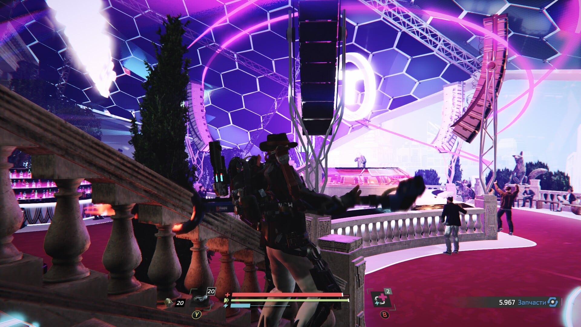 Вот чем пользоваться стоит, так это вашим дроном. Помощник на спине героя взлетает и стреляет по целям по нажатию отдельной кнопки. На него устанавливаются различные модули от пулемета и метателя коктейлей Молотова до ЭМИ-снаряда, оглушающего врагов и открывающего магнитные замки. Опять же, дрон совсем не обязателен для сражений, но с ним удобно снимать стрелков, ломать турели и дожимать шкалу здоровья особо вредных боссов.