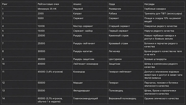 Ранги PvP в WoW