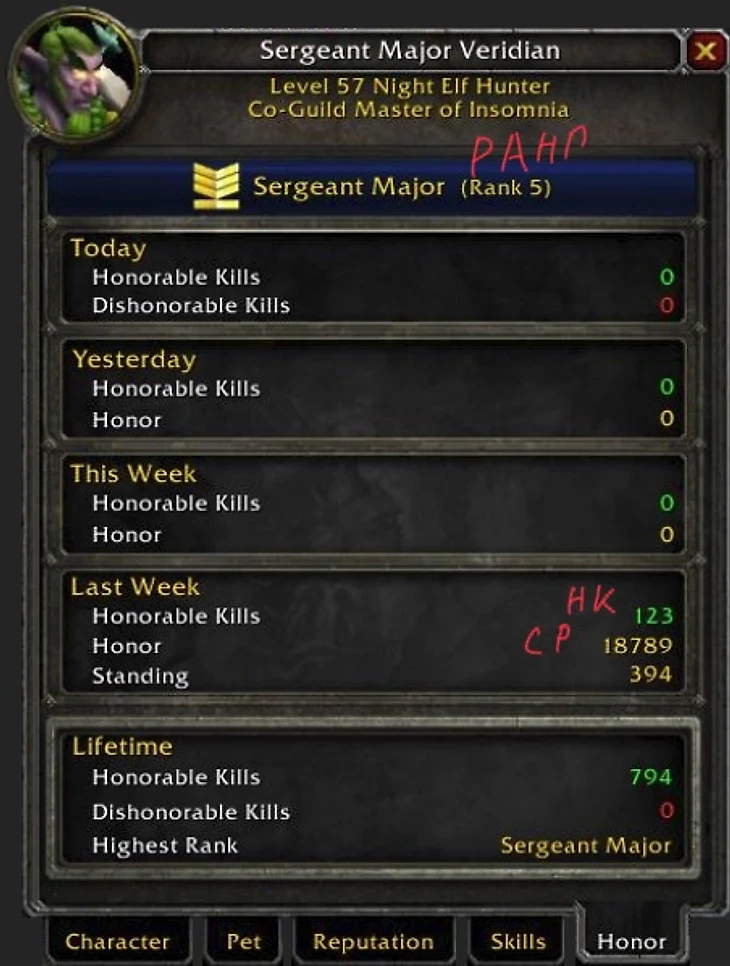 В классическом WoW они служат для сравнения PvP-действий игрока со всеми другим игроками сервера. Всего есть несколько показателей участия.