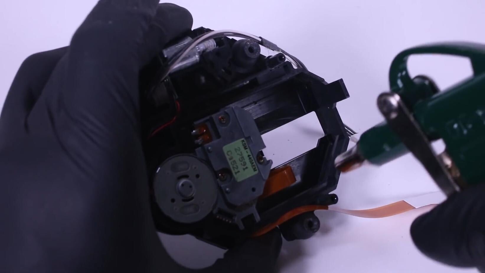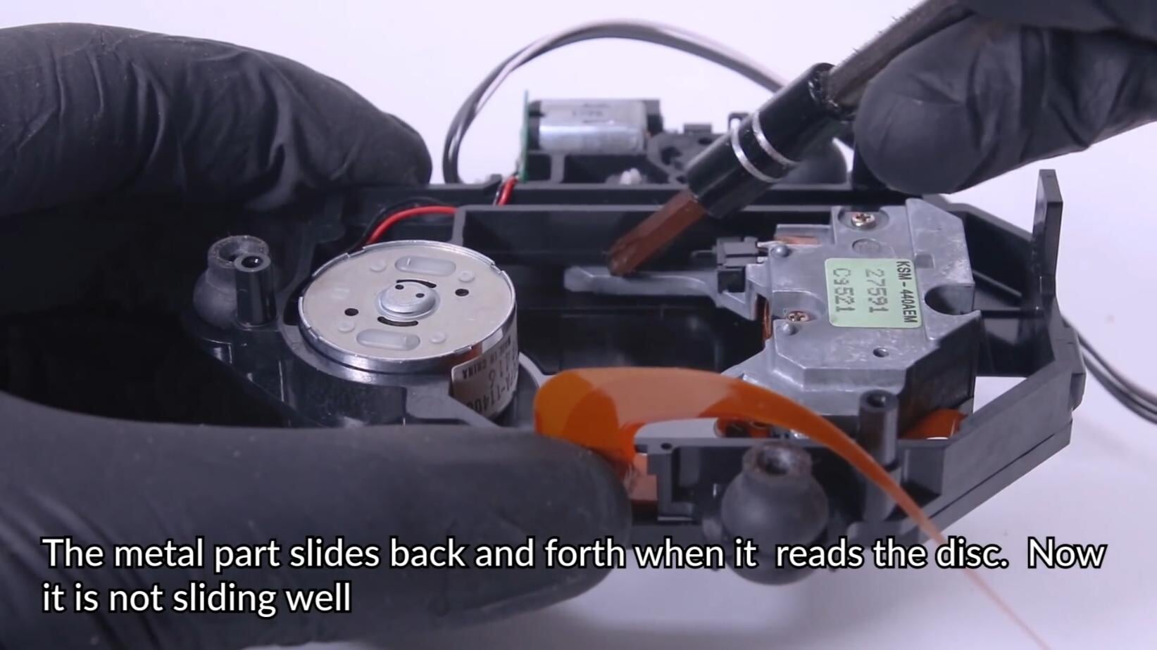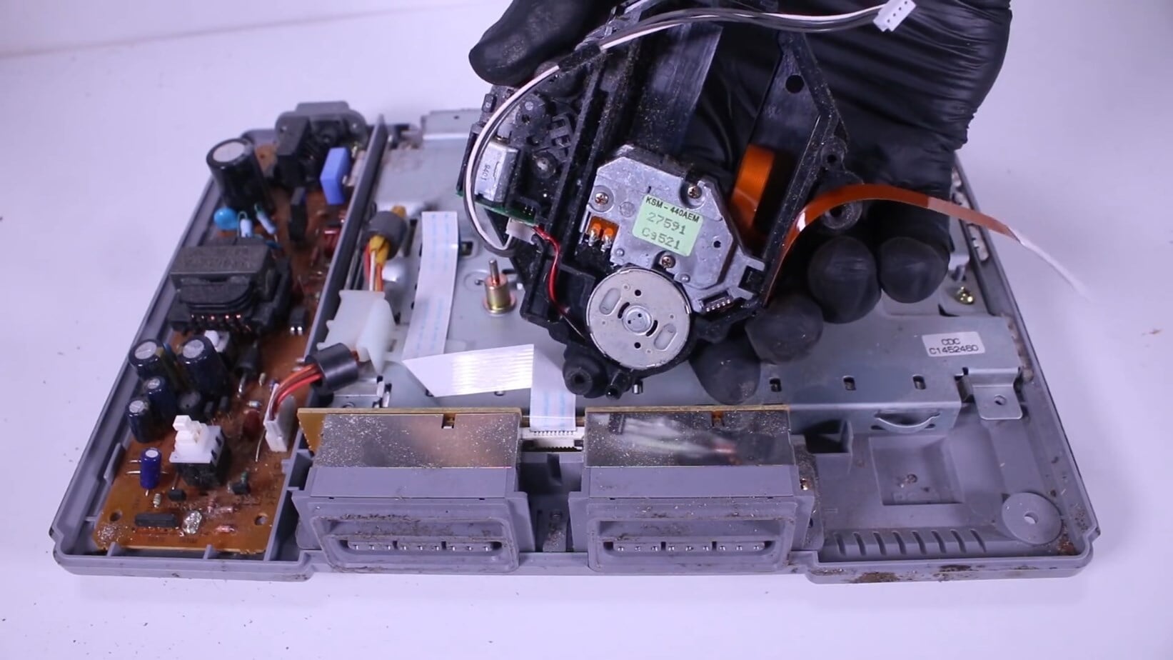 Оказалось, что у этой консоли самая распространенная неполадка первой PlayStation, связанная с механизмом лазера для дисков. В данном случае, металлическая часть, которая должна ездить взад-вперед, периодически заедала. Odd Tinkering попробовал решить проблему, добавив немного масла в механизм – это помогло, так что менять запчасть не пришлось.
