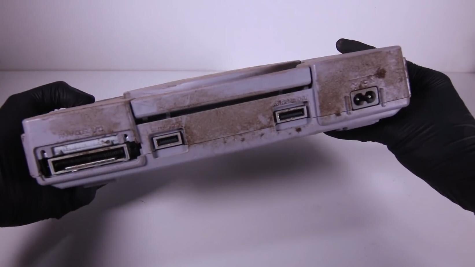 За годы неаккуратного хранения консоль покрылась слоем пыли, внутрь попала грязь и даже механические кнопки на корпусе перестали нажиматься должным образом.