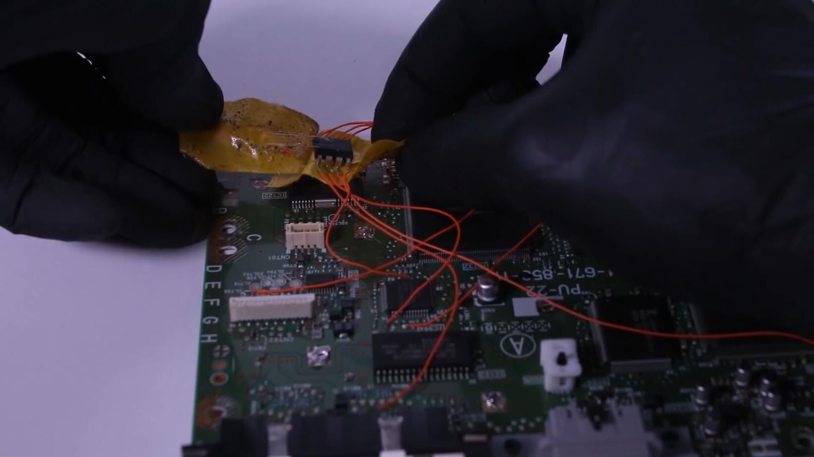 Далее мастер отпаял пиратский чип.