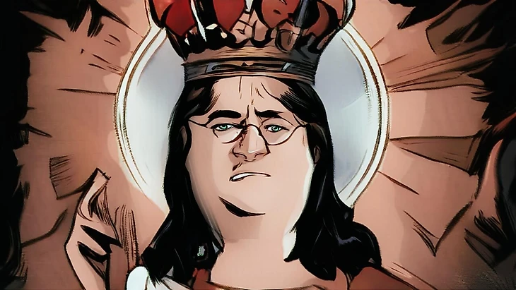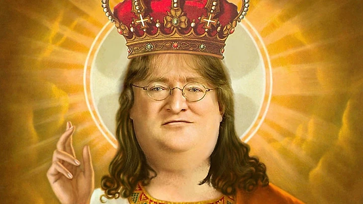 Гейб Ньюэлл в образе святого покровителя распродаж Steam: