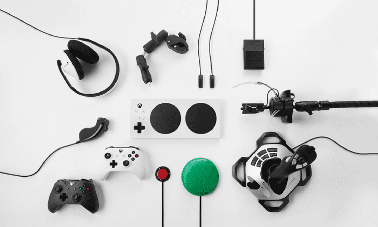 Первое, что пришло на ум - геймпад для Xbox One, представленный Microsoft полтора года назад перед E3 2018. Официальная цена всего $99, это, например, на $60 дешевле элитного геймпада Microsoft. К тому же, показали не только сам геймпад, засветившийся в большинстве медиа, но и дополнительные аксессуары, который подойдут людям с различными проблемами: педали, тачпады, специальные переключатели, управляемые с помощью рта.