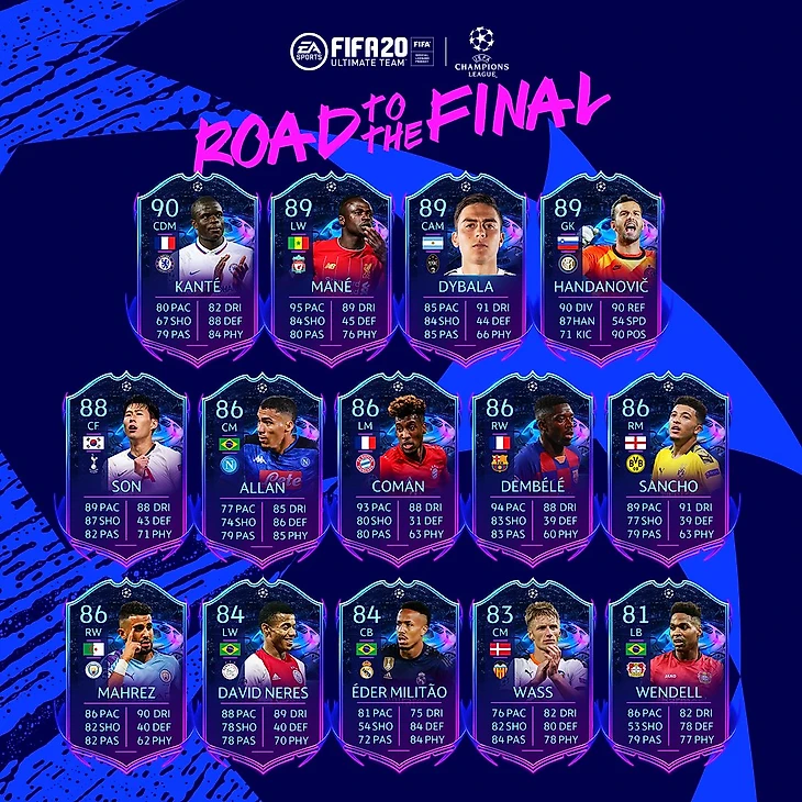 Вышли очередные цветные карточки в FIFA Ultimate Team! Road To The Final (Путь к финалу) – специальные улучшающиеся карточки, приуроченные к еврокубковым состязаниям: Лиге чемпионов и Лиге Европы. От игроков ничего не требуется, они могут даже не выходить на поле – главное, чтобы их команда прошла как можно дальше, за что они будут получать бонус в +1 к рейтингу.