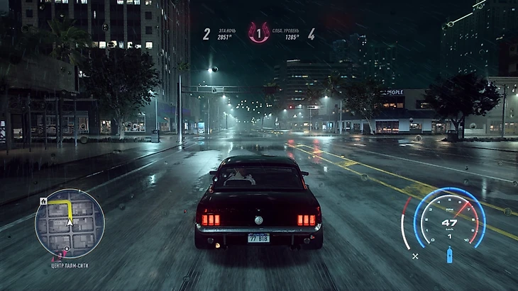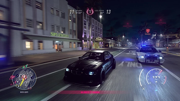 Ночью никаких официальных заграждений или конфетти на старте нет, зато есть копы и индикатор «жары». Это своеобразный множитель заработанной репутации, который накапливается после заездов или нескольких уничтоженных машин местных ДПСников. Чем дольше и увереннее гоняешь ночью – тем больше репутации получишь после появления в гараже. Но при этом и прессинг со стороны полиции будет сильнее.