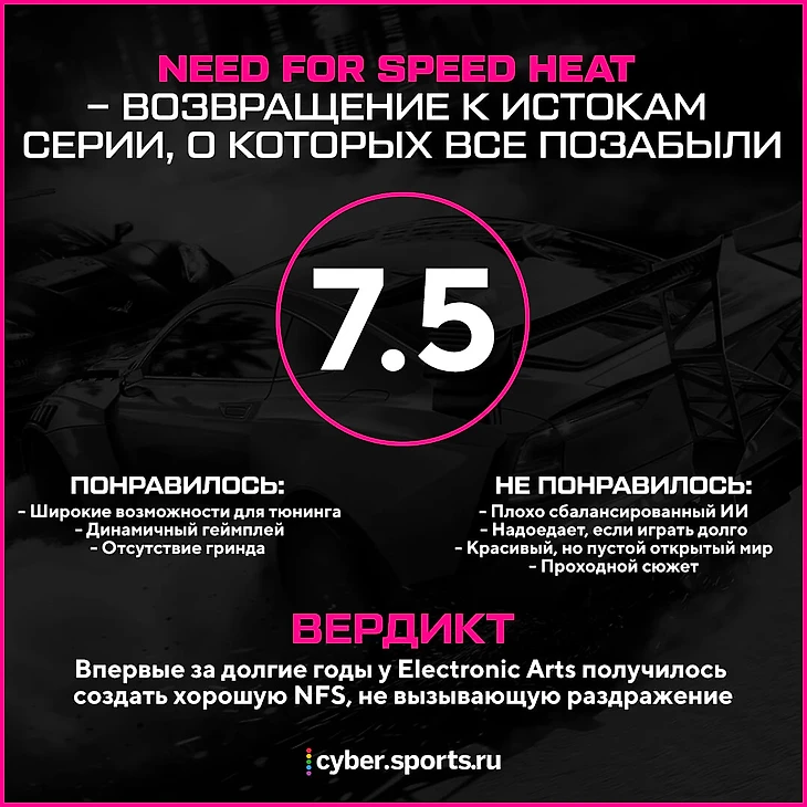 8 ноября одновременно с Death Stranding до релиза добралась Need for Speed Heat – гонка, которую Electronic Arts продвигала как игру в честь 25-летия серии. Несмотря на ожидаемо большой скепсис со стороны геймеров и журналистов, у разработчиков из Ghost Games получилась добротная гоночная аркада. Это не прорыв в жанре, но здесь есть все любимые нам особенности из культовых частей серии – таких как Underground 2, Most Wanted и Rivals.