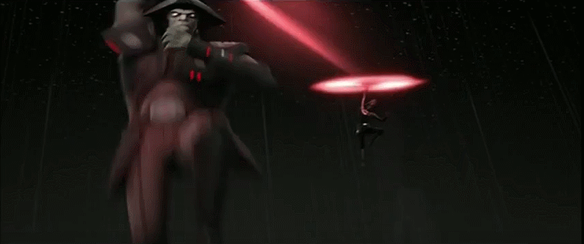 Впервые такие световые мечи, как и сами Инквизиторы, показали в каноничном мультсериале «Звездные войны: Повстанцы». На протяжении нескольких сезонов герои многократно сражаются с Инквизиторами, и постоянно терпят поражение, как только те включают свой фирменный механизм.