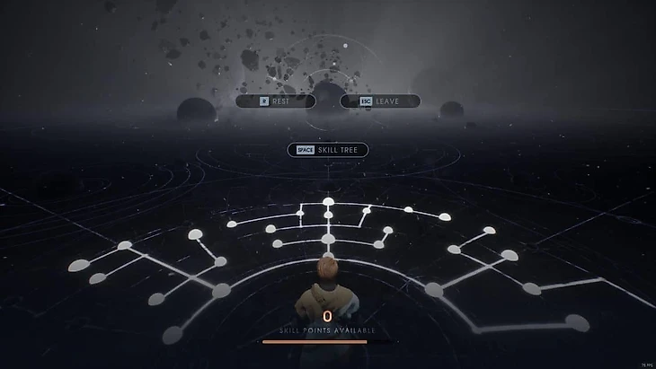 Что еще игра взяла от игр From Software? Если с боями все более-менее понятно – их концепция прекрасно подходит для игры про джедая – то вот система с точками медитаций (местные костры) вызывает вопросы. На них можно сохранить игровой процесс, прокачать навыки и отдохнуть. После «отдыха» у главного героя восстанавливается здоровье и запас аптечек, но при этом все враги на карте возрождаются. Но если в Dark Souls или Bloodborne это выглядело уместно, то в Fallen Order это вызывает недоумение. Откуда на той дальней скале появился штурмовик, если я только убил его? Возникает ощущение, будто в Respawn решили, что если уж копировать механики, то основательно.