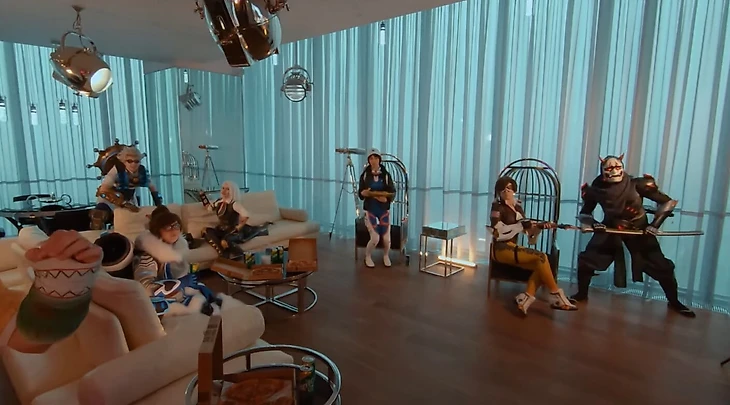 На протяжении ролика герои путешествуют по различным уголкам Москвы, начиная от Красной площади и колеса обозрения и заканчивая ночным клубом. По пути они встречают нескольких косплееров в образах героев игры: Трейсер, Лусио и других.