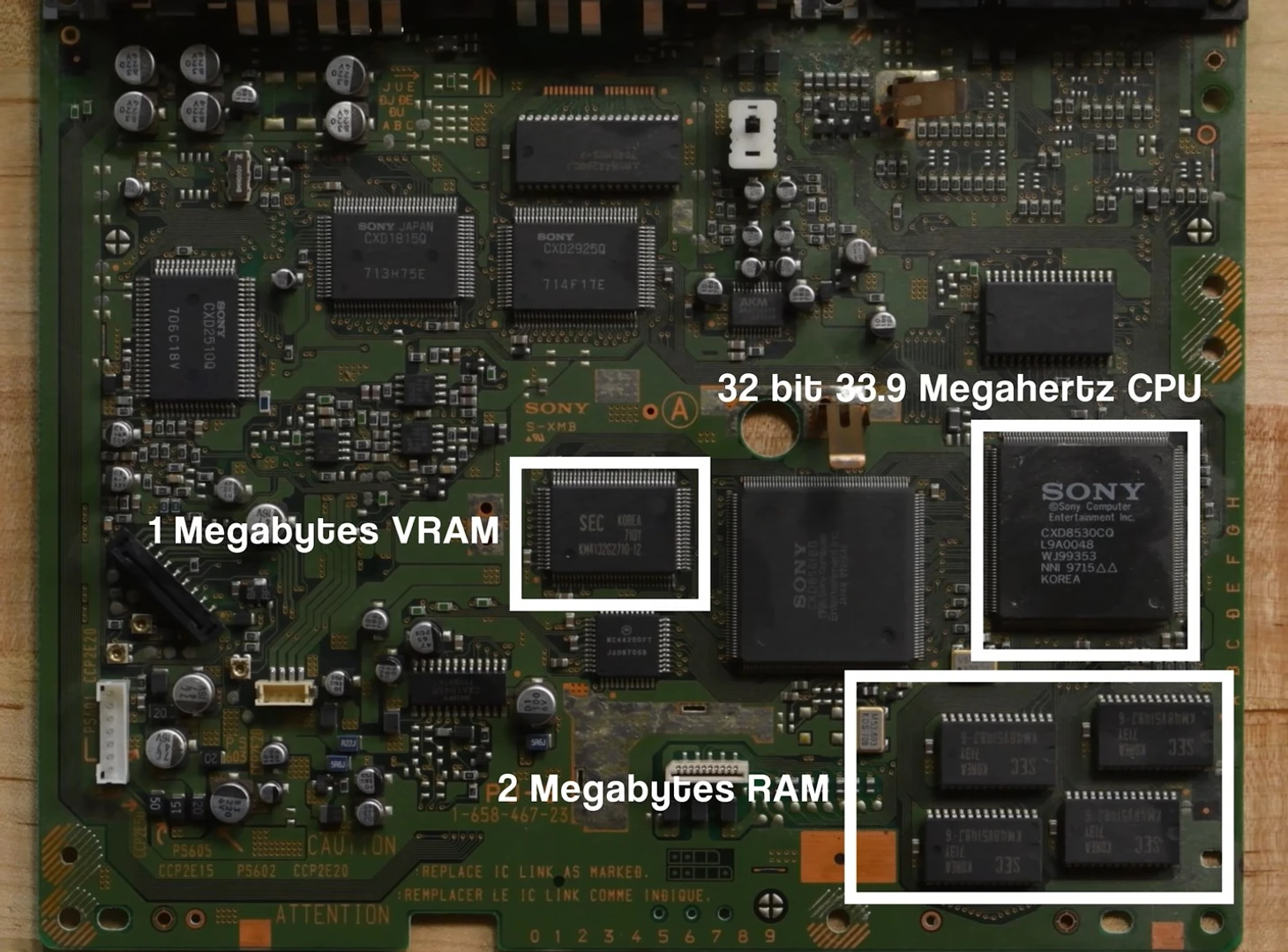 На ней установлены процессор MIPS R3000 с максимальной тактовой частотой 33,9 МГц, 2 МБ оперативной памяти, 1 МБ видеопамяти VRAM, а также 16-битная звуковая карта.