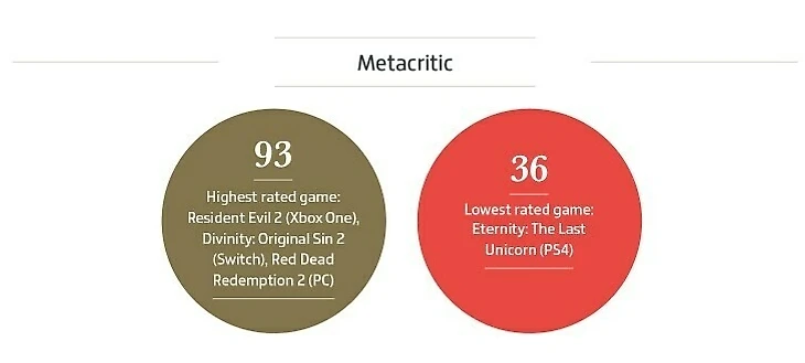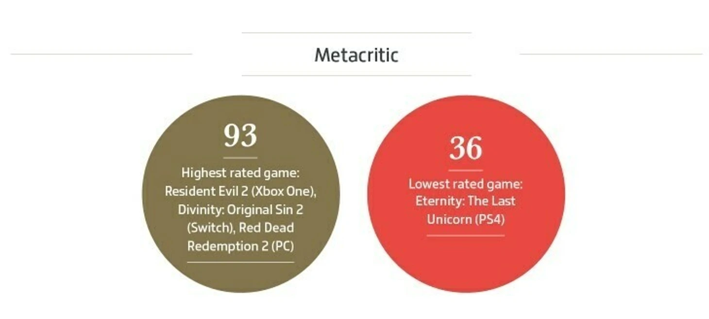 Ни одна игра в 2019 году не заработала больше 93 баллов на Metacritic. Высших наград удостоились Resident Evil 2 (версия для Xbox One), Divinity: Original Sin 2 (Switch) и Red Dead Redemption 2 (PC). Но стоит учитывать, что многие рецензенты даже не запускали вестерн от Rockstar Games на компьютерах, а написали ревью на основе консольных версий.