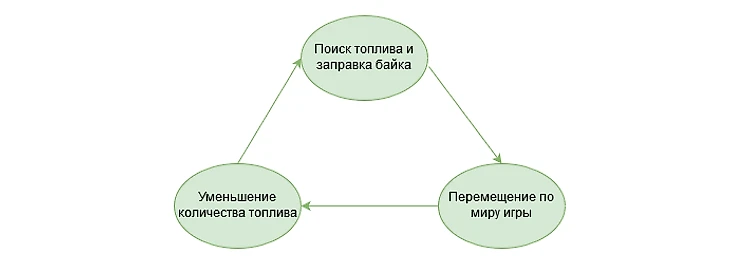 То есть даже наименьший геймиплейный цикл из первого и третьего пунктов подразумевает как минимум одну дозаправку байка. Поэтому быстрый расход топлива из вторичной механики превращается в то, что постоянно прерывает игровой процесс.