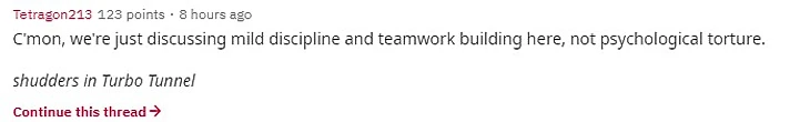 «Да камон, главная цель – научить их дисциплине и командной работе, а не подвергать психологической пытке»