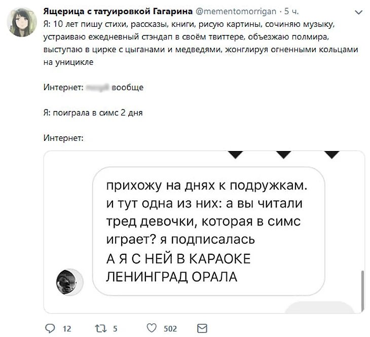 24-летняя Барбара отыгрывает жизнь самой бедной героини The Sims 4: Бетти появилась на свет с 50 долларами (точнее, симилионами – так называется игровая валюта) в кармане и кустом вместо дома. Путешествие со дна общества к нормальной жизни завирусилось: первый твит в треде набрал более 15 тысяч лайков и 1,6 тысяч ретвитов, а на саму Барбару за последние дни подписались примерно 4 тысячи человек.