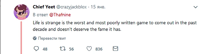 «Life is Strange – худшая и самая плохо написанная игра прошлого десятилетия и не заслуживает своей популярности».