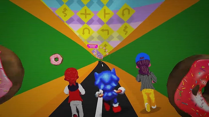 При этом местами явно прослеживаются отсылки именно к играм: тут и обязательная для игровых «Соников» локация Green Hill с клетчатыми холмами и зеленой травой, и бонусный псведо-трехмерный уровень прямиком из Sonic the Hedgehog 2. Правда, вместо бомб и сфер Соник тут собирает пончики – видимо, его экранная версия их любит.