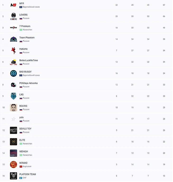 Прямой участник закрытых квалификаций, команда киберспортсменов, Team Phantom - DieZzz, Ubica, BusterTravel, Recrent, в составе которой играют бывшие игроки таких команд как Avangar, TeamUnique, Se7en Esports, NaVi набрала в свой актив лишь 38 очков, отрыв от команды идущей на 9-м месте составляет 9 пунктов, что в общем говорит что отрыва нет, впереди еще 6 игр.