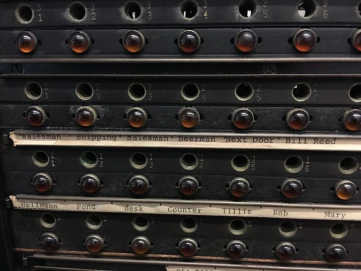 У аппарата даже осталась панель с именами и прозвищами абонентов, которая упрощала кому-то работу сто лет назад:
