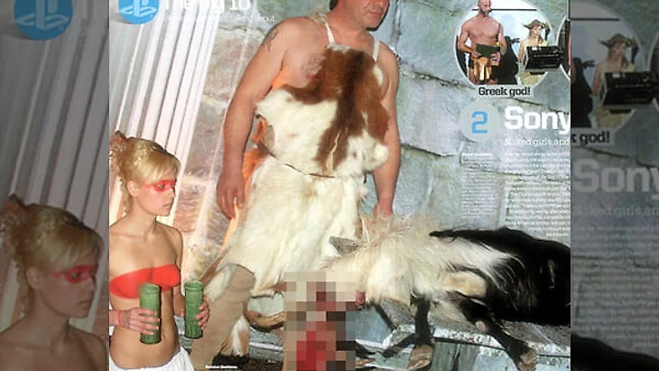 Продолжая тему безумной и провокационной рекламы PlayStation нулевых, вспомним, пожалуй, самую скандальную историю компании. В 2007 году на PlayStation 2 вышел экшен про убийцу греческих богов God of War 2 – Sony устроила очень тематическую предрелизную вечеринку для прессы. На ней гости оказались практически в мире игры, известной за наготу и жестокость. И дело не только в декорациях и костюмах промоутеров: в программе мероприятия были полуголые девушки с бодиартом и настоящая мертвая коза.