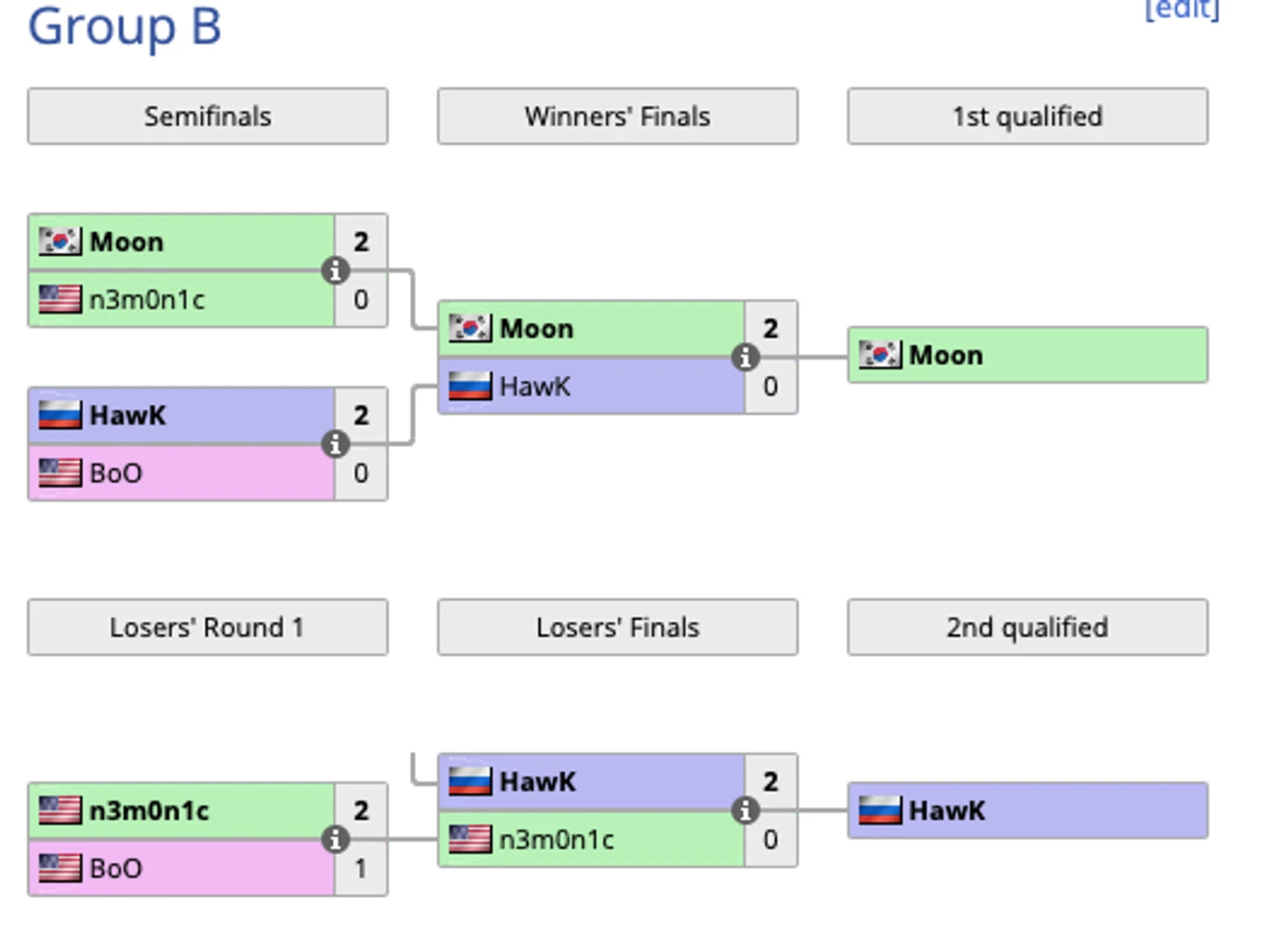 Hawk тоже пришлось немного попотеть – в верхней секте он попал на легендарного ночного эльфа из Кореи Moon, но до плей-офф также добрался.