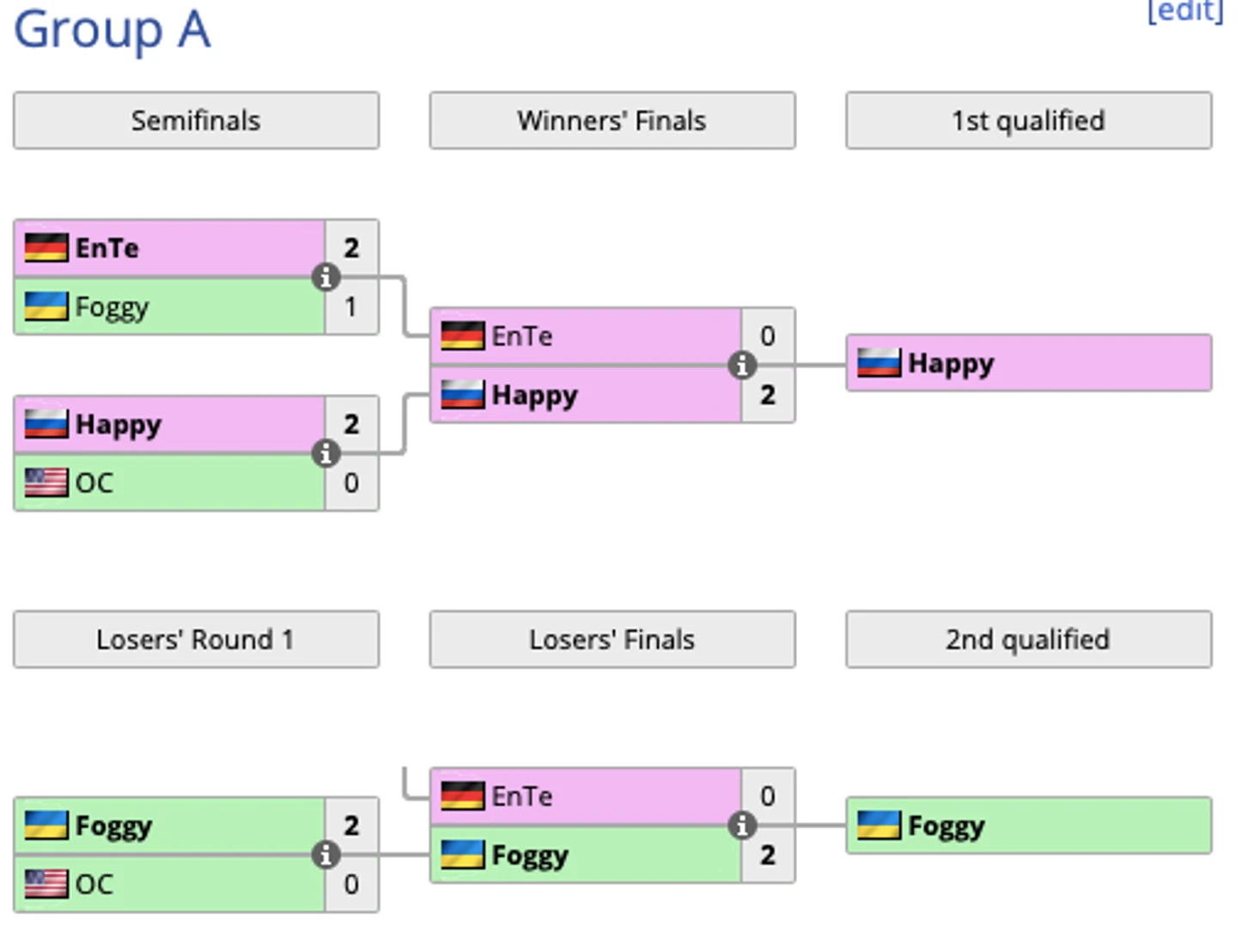 Happy без проблем преодолел групповую стадию, а вот Foggy, который неожиданно уступил в верхней сетке игроку за нежить из Германии EnTe, пришлось идти в плей-офф по нижней сетке.